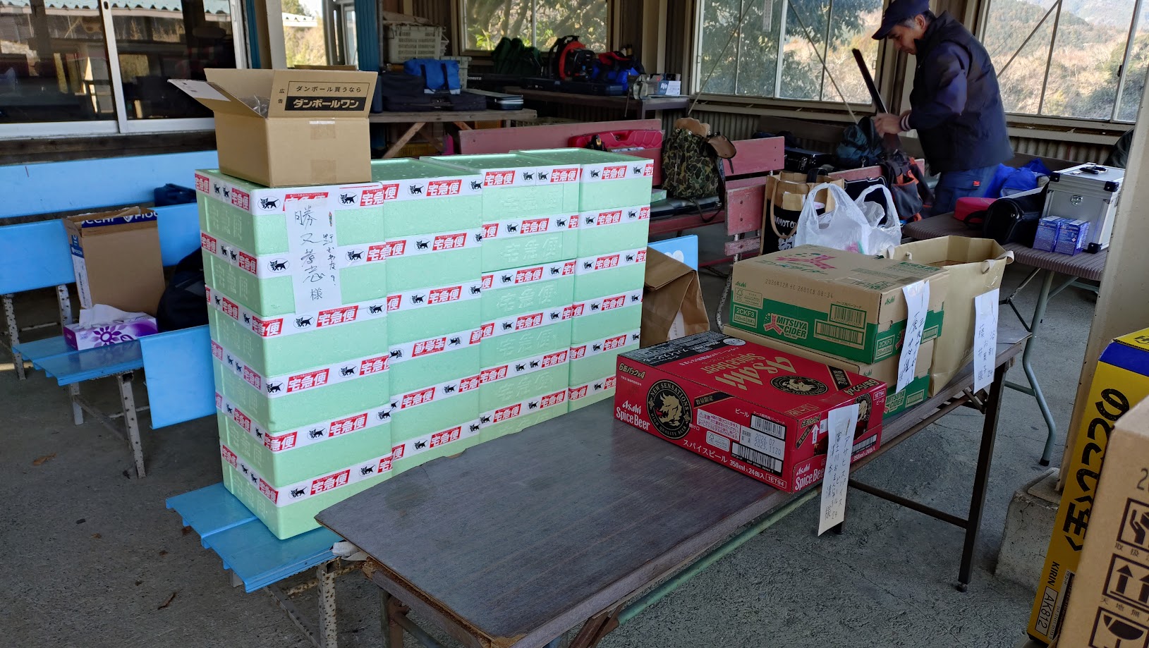 表彰式 景品の抽選会でもあります 全ての熨斗を22個に分別しました 自分は豚ジンギスカン焼肉、デコポン(不知火)を用意
